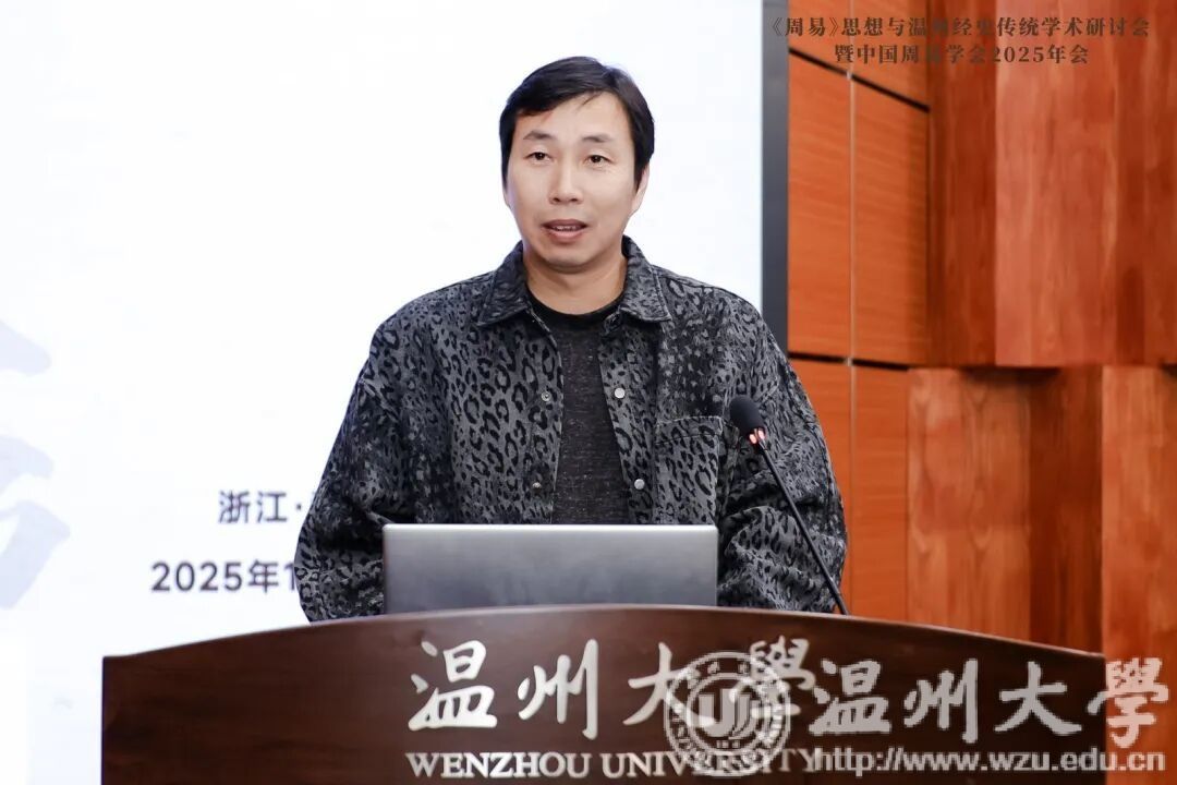 山东大学易学与中国古代哲学研究中心执行主任、中国周易学会副会长刘震教授,从历史维度梳理了温州与易学的深厚渊源。他回顾了东晋易学家郭璞以“北斗象城”理念规划温州古城的历史,阐述了永嘉学派“义利并重”思想与《周易》“利者义之和”理念的内在共鸣,认为温州模式正是周易“开物成务”精神的现代诠释。