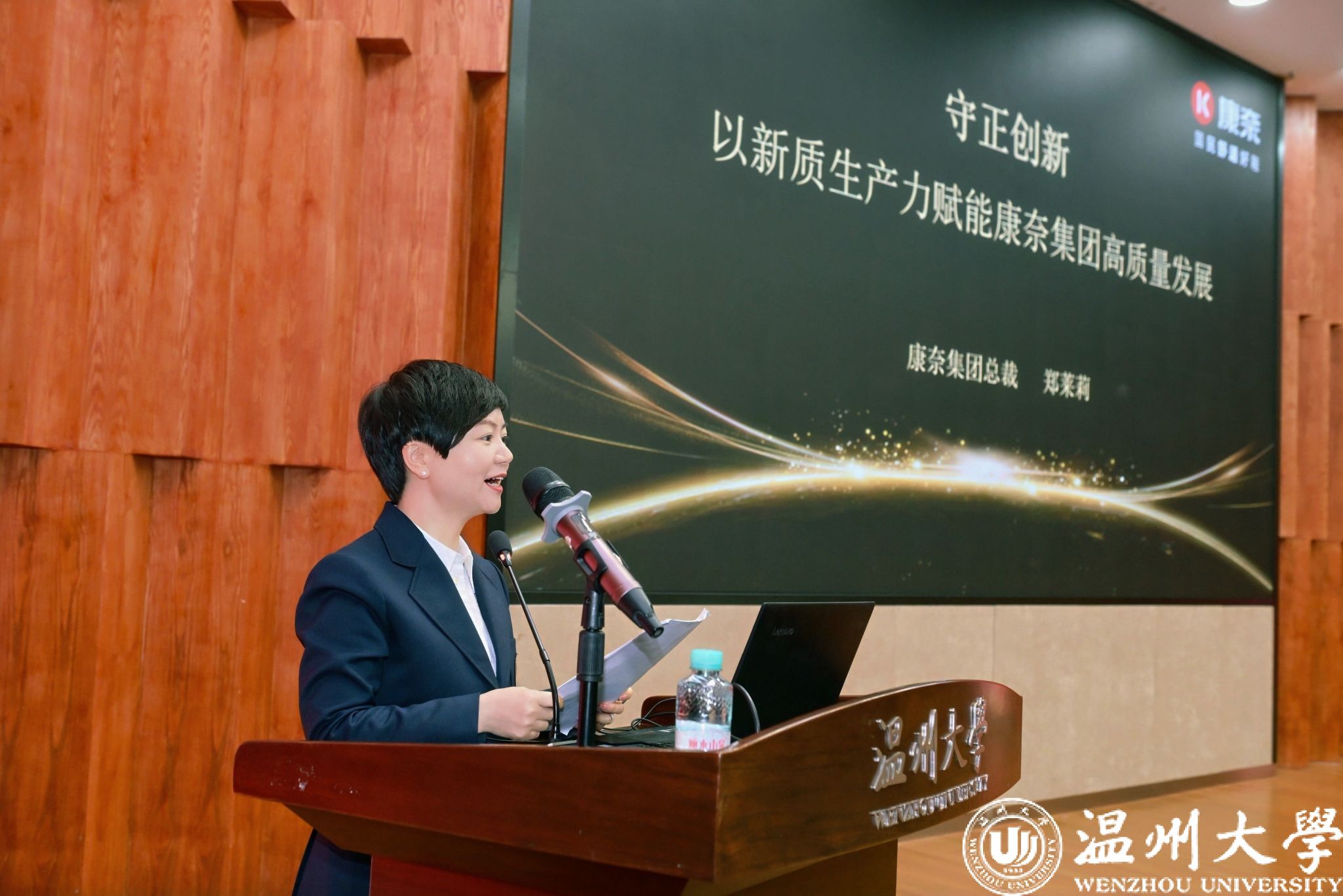 康奈集团总裁郑莱莉则讲述了传统鞋企如何以数智化驱动品牌焕新与生态升级。她分享了自己运营短视频与直播,推动全渠道数字化转型的实践,借助AI技术实现高效设计、柔性制造及个性化定制的创新成果,投资鞋材交易市场与全域电商直播基地,构建鞋业生态共同体的战略布局。