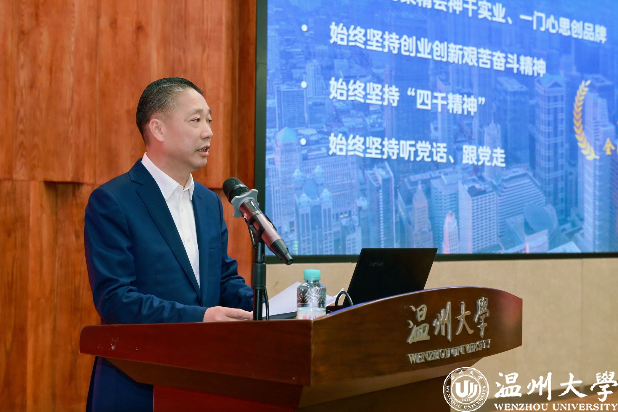 会议伊始,温州大学党委副书记庄兴忠出席活动并致辞。他指出,温州大学始终与温州这座城市、与温州民营经济血脉相连、同频共振。近年来,学校紧密对接温州“5+5+N”产业体系,优化学科专业布局,与本土龙头企业共建产业学院、博士创新工作站,联合开展技术攻关与成果转化,为民营企业发展提供坚实的智力支撑与人才保障。他强调,温州大学EDP中心的成立,是学校服务地方经济、助力民营企业家成长的又一重要战略举措。该中心将依托温大优质办学资源,紧扣民企发展实际需求,打造兼具全球视野、中国根基与温州特质的企业家终身学习平台,必将成为温州民营企业家的“加油站”,为打造新时代民营经济标杆城市贡献重要力量。