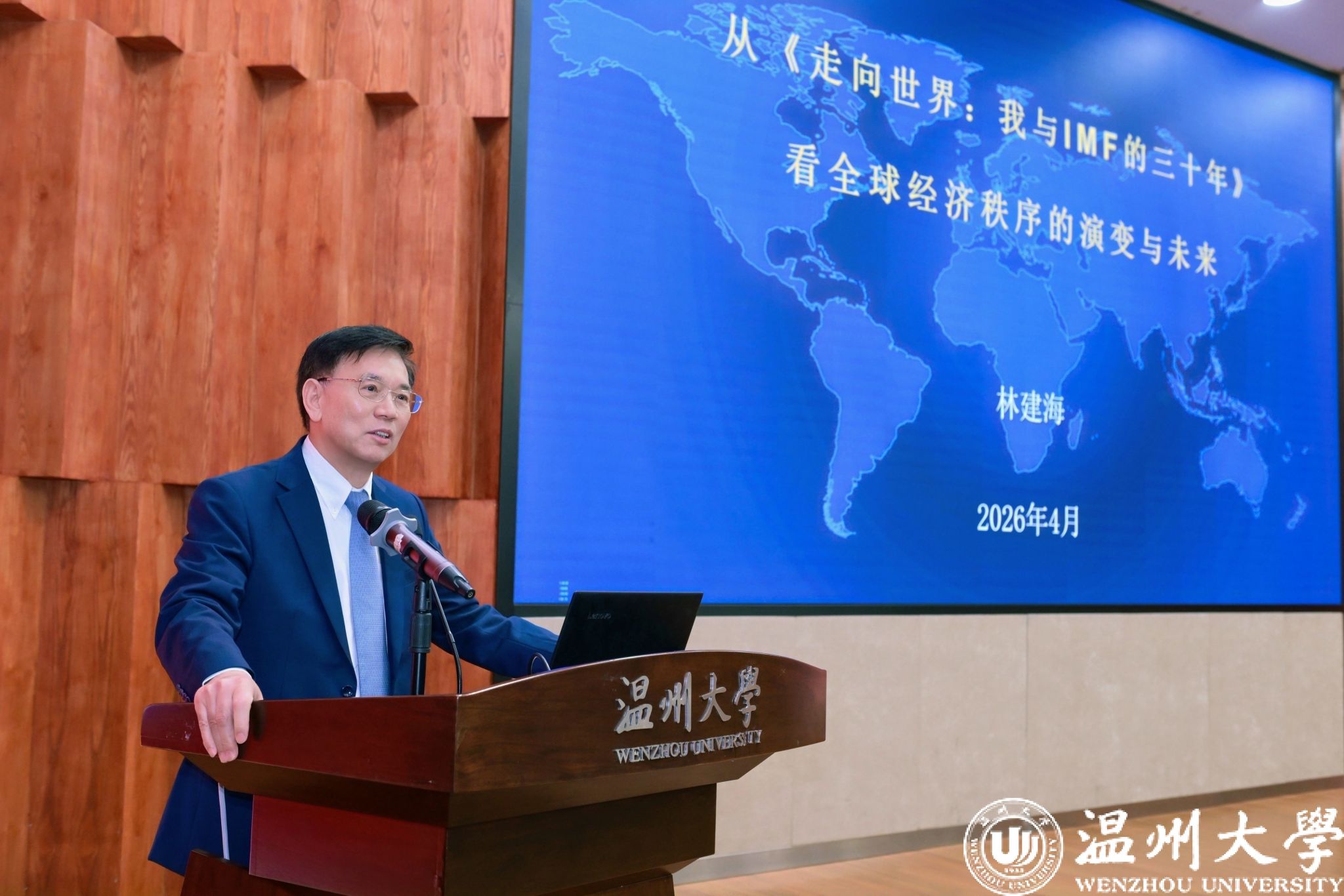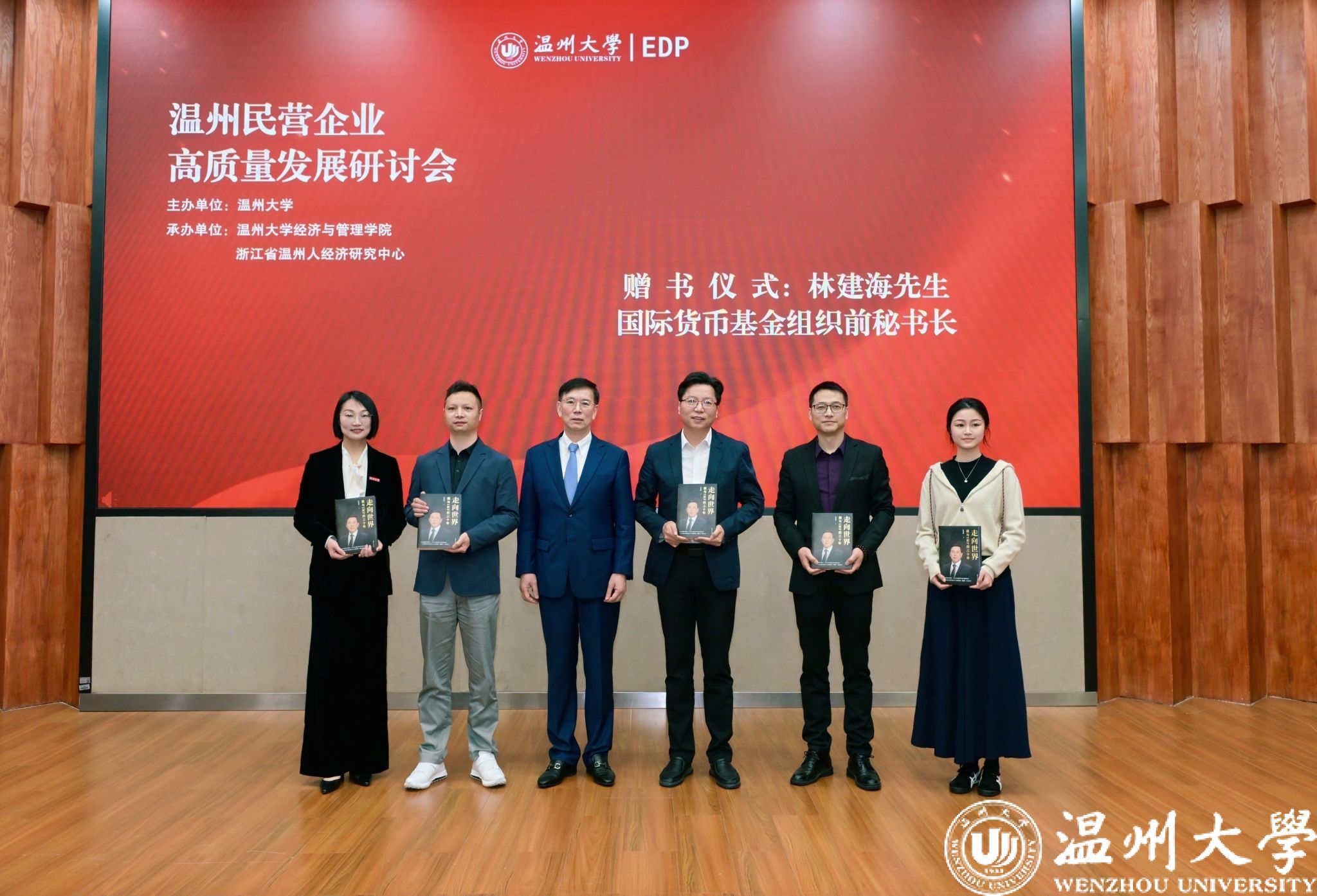 演讲结束后,林建海教授还向优秀企业家及师生代表赠送了专著《走向世界:我与IMF的三十年》。