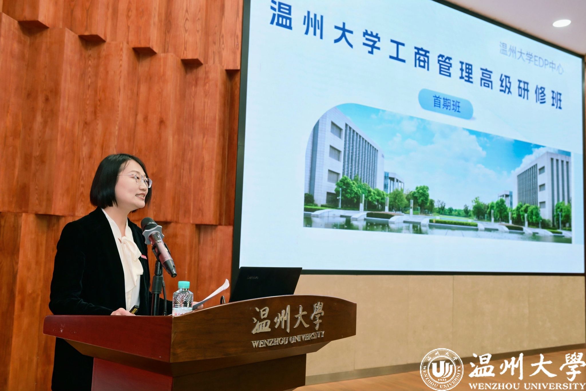 会议最后,温州大学经管学院副院长、EDP中心主任陈文芝正式发布了温州大学EDP首期高级研修班项目。该项目将打破传统培训模式,融合高校学术严谨性与温州民企实战土壤,设置宏观经济、战略管理、企业转型升级等六大核心模块,致力于培养具有全球视野、创新精神与责任担当的新时代温商群体。