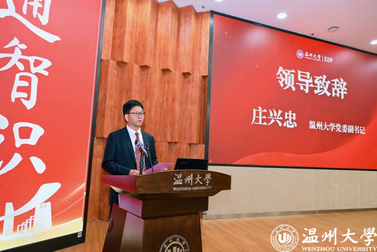 会议伊始,温州大学党委副书记庄兴忠出席活动并致辞。他指出,温州大学始终与温州这座城市、与温州民营经济血脉相连、同频共振。近年来,学校紧密对接温州“5+5+N”产业体系,优化学科专业布局,与本土龙头企业共建产业学院、博士创新工作站,联合开展技术攻关与成果转化,为民营企业发展提供坚实的智力支撑与人才保障。他强调,温州大学EDP中心的成立,是学校服务地方经济、助力民营企业家成长的又一重要战略举措。该中心将依托温大优质办学资源,紧扣民企发展实际需求,打造兼具全球视野、中国根基与温州特质的企业家终身学习平台,必将成为温州民营企业家的“加油站”,为打造新时代民营经济标杆城市贡献重要力量。