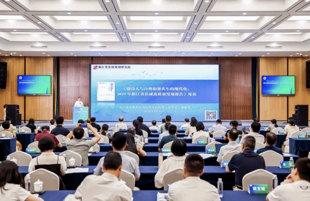浙江农林大学生态文明研究院院长兼首席专家沈满洪发布并解读《绿水青山就是金山银山理念的逻辑力量》,浙江省发展规划研究院党组成员、副院长潘毅刚解读《建设人与自然和谐共生的现代化:2025年浙江省县域高质量发展报告》。