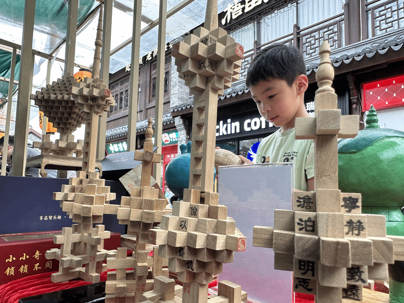 活动现场,古韵与科技交相辉映。温州AI社科志愿者制作的AI预热视频在活动前精彩亮相,G3机器人身着宋韵古装与群众近距离互动,42个非遗展位沿老街铺展,汇聚了来自全国6省及浙江省内11个地市的非遗瑰宝。省外展区中,四川茶艺的行云流水、潍坊风筝的巧夺天工、宋锦织造的经纬传奇,与省内余杭纸伞的油墨清香、绍兴黄酒的醇厚芬芳相映成趣。更有温州米塑、黄杨木雕等15项本土非遗技艺集中展示,瓯海区外国语学校“云上博物馆”课程以数字化手段演绎传统技艺……这场跨越时空的文化对话,让市民在家门口就能触摸到中华文明的脉络。此外,主题展览区作为活动的重要组成部分,通过图文并茂的呈现方式,系统梳理并展示了浙江省各地市在科普领域的创新成果与特色项目,为参观者搭建了全景式了解浙江科普发展脉络的窗口。